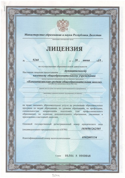 | Полное наименование образовательной организации* | Муниципальное казенное общеобразовательное учреждение "Камхамахинская средняя общеобразовательная школа" |