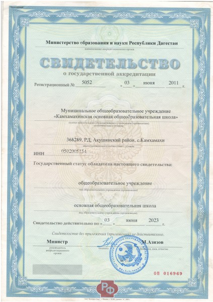 | Адрес местонахождения образовательной организации* | 368289, Республика Дагестан, Акушинский район, с. Камхамахи |